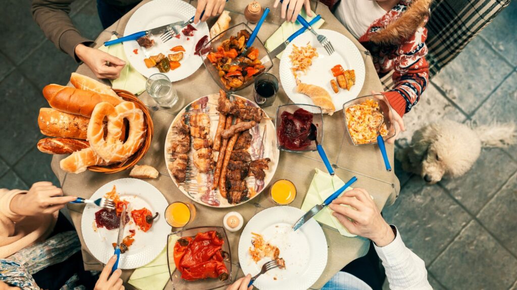 hlebíčky, obložené bagety, obložené mísy, pečená kolena, knedlíky atd.